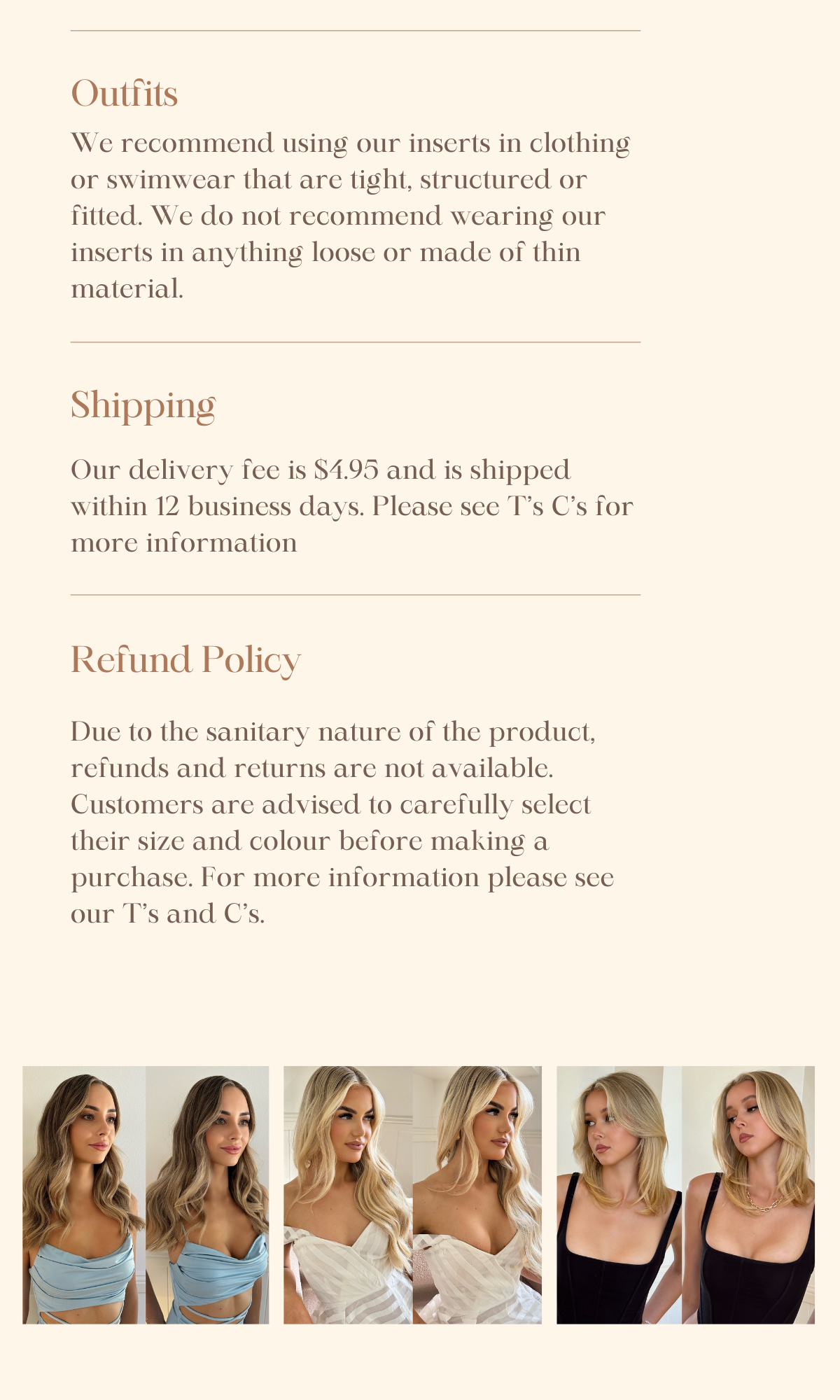 • Our double-sided sticky bra is not to be used on any women who are pregnant or breast feeding. Or any women who have skin allergies or skin sensitivity.